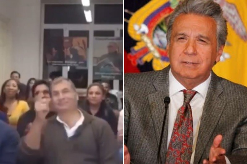 “Lenín chao, Lenín chao, Lenín chao, chao, chao… Ecuatoriano, sal a la calle a recuperar a tu país”, coreó el exmandatario, quien se encuentra en el exilio tras ser procesado por su presunta vinculación en casos de corrupción.